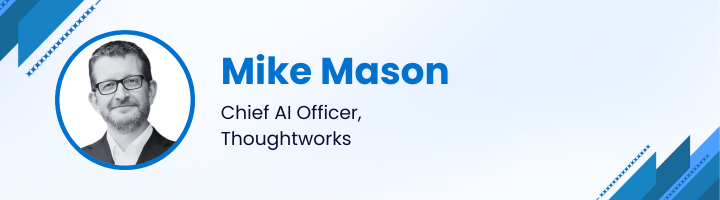 Mike Mason – Chief AI Officer, Thoughtworks says that the the AI tools autocompletes the code that he was thinking to execute at a super speed