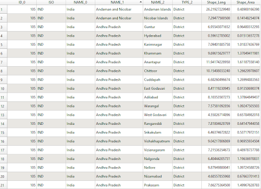 Non-spatial data are represented in table formats. For example, the administrative boundary table has population information, district name, provinces, sex ratio, etc.