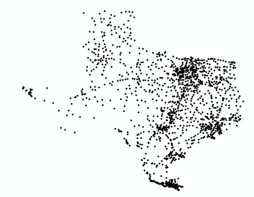 Point data is used to represent non-adjacent features and to represent discrete data points. Points have zero dimensions, and it gives latitude & longitude of the respective location. The point feature will not provide the length and area of the features. Examples would be schools, points of interest such as hospitals, schools, colleges, worship centers, and more other locations.