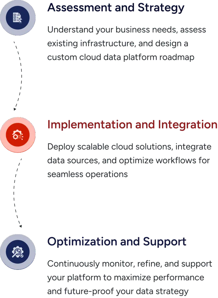 BUSoft’s Cloud Data Platform Services streamline your data infrastructure from strategic planning to implementation and long-term optimization. Our Managed Cloud Data Services and Cloud Data Management Services ensure seamless integration, security, and performance optimization.
