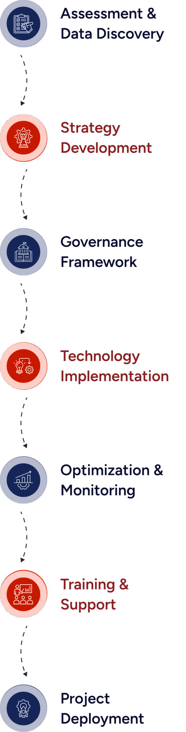 Our consulting services establish clear governance roles and responsibilities, fostering a culture of accountability and data-driven excellence.
