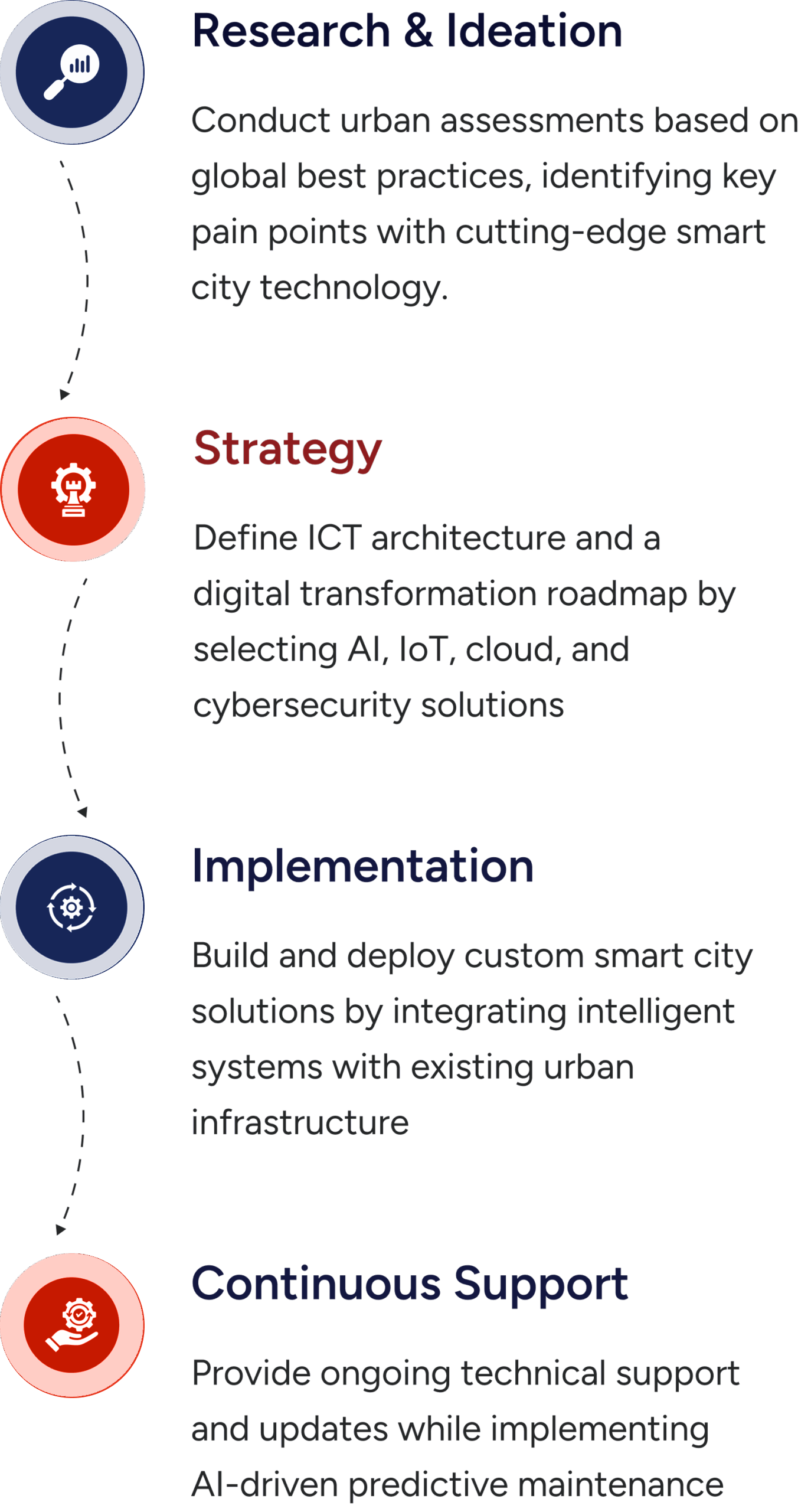 At BUSoft Technologies, we follow a structured, impact-driven approach to building smart city solutions and providing smart city services that enhance urban efficiency and sustainability.